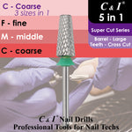 - 5 in 1 スーパーカット シリーズ ファイルのサイズを説明します。サイズ ファミリーは 4 つだけ選択できます。 Middle-M、Coarse-C、Extra Coarse-XC、および Double Coarse-XXC。上記4サイズの除去能力は純正ネイルドリルとは異なります。スーパーカット機能をプラスし、MサイズはXXF、XFサイズとほぼ同等です。サイズCはXC、XXCとほぼ同じです。 XCサイズはXXC、3XCとほぼ同じです。サイズXXCは3XC、4XCとほぼ同じです。