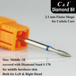• C&Iダイヤモンドネイルドリル:キューティクルケアの特別任務。さまざまな直径のフレーム形状ヘッドを選択可能: 1.8 mm ミニ、1.8 mm、2.1 mm、2.3 mm、2.5 mm、2.7 mm