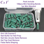 Pack: 100pcs mini small sanding bands and 1pc mini mandrel. Sanding bands substitute for nail drill bits. Professional nail supplies for nail techs. Must have in nail salon, nail studio, or at home use. Slim body, 3.1 mm / 0.12 inch inside diameter, small sanding bands, easy to operate. It’s also could be used to make cuticle care. 5 colors sanding bands for choose. 5 sizes / grits of sanding bands for manicure. Multi-function to use.